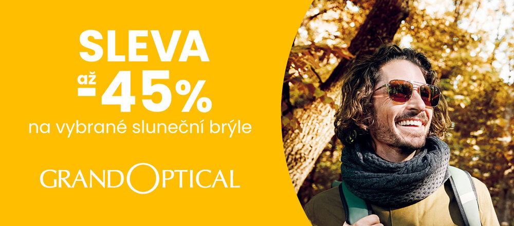 I na podzim ohrožuje náš zrak sluneční záření. Chraňte se slunečními brýlemi a dolaďte jimi Váš podzimní styl. Přijďte do prodejny GrandOptical a pořiďte si nové sluneční brýle se slevou až 45 %.  Akci nelze kombinovat ani sčítat s jinými akčními nabídkami nebo poukazy. Nabídka platí do odvolání. Více informací v prodejně GrandOptical nebo na našich webových stránkách.